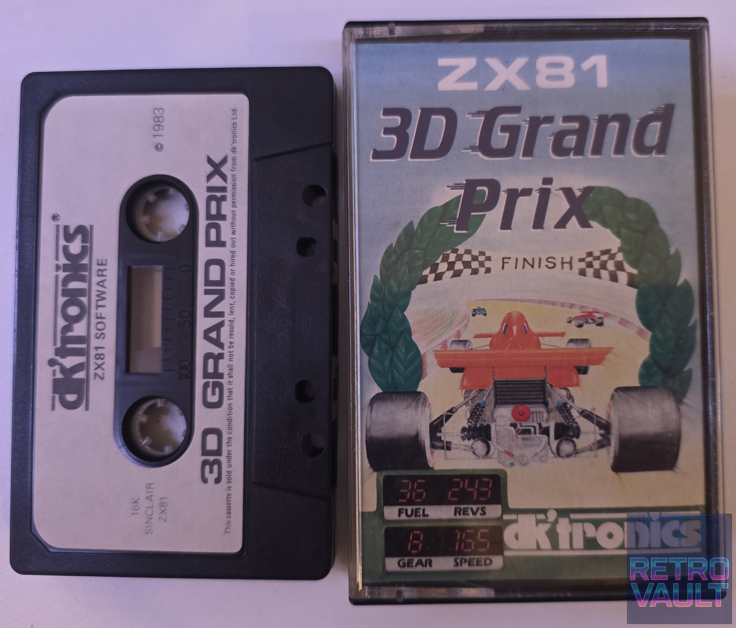 3D Grand Prix est un simulateur de course automobile en vue première personne développé par M.E. Wright et publié par dk'tronics en 1983. Sur un circuit généré aléatoirement, le joueur doit disputer 5 tours contre d'autres pilotes en gérant 6 rapports de boîte de vitesses, le compte-tours (moteur à ménager), les conditions météo changeantes et les arrêts aux stands. Un niveau de détail remarquable pour un ZX81 16K. dk'tronics, fondée par David Heelas, était l'une des maisons d'édition britanniques les plus actives de l'écosystème Sinclair — parties de hardware, parties de software.