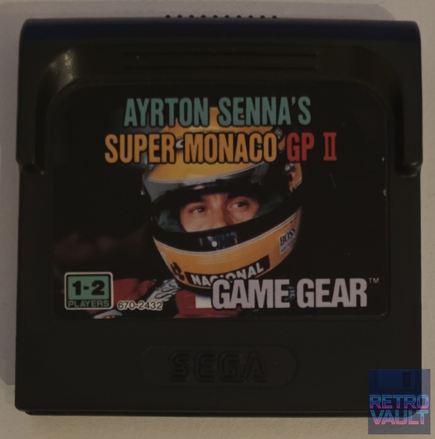Suite directe de Super Monaco GP, ce titre a la particularité unique dans l'histoire du jeu vidéo F1 d'avoir été co-développé avec Ayrton Senna en personne — triple champion du monde (1988, 1990, 1991) et recordman de victoires à Monaco (6 fois). L'idée est née du distributeur brésilien de Sega, Tec Toy, et Senna s'est personnellement impliqué : visite de 3h30 au siège de Sega à Tokyo, suggestions de physique de conduite, enregistrement de commentaires vocaux pour chaque circuit, et conception de trois circuits fictifs dont son propre circuit privé à Tatuí, São Paulo. La version Game Gear propose le mode World Championship sur les 16 circuits de la saison F1 1991, un mode versus 2 joueurs, et la boîte de vitesses au choix (auto, 4 ou 7 rapports). Note : la version Game Gear omet le mode Senna GP et adopte une vue troisième personne, contrairement à la version Mega Drive. Le jeu n'a jamais été réédité en raison des droits liés à l'image de Senna, ce qui renforce son intérêt pour les collectionneurs.