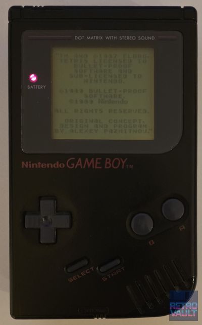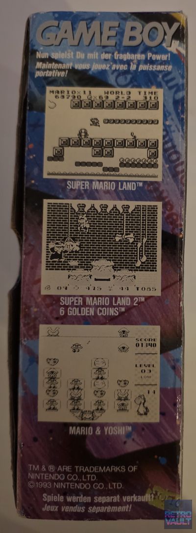 En 1994, face à la montée en puissance de la Sega Game Gear et de l'Atari Lynx, Nintendo lance la campagne "Play It Loud" — une stratégie marketing radicalement différente ciblant un public adolescent avec des publicités volontairement provocatrices et des coloris flamboyants. Six nouvelles couleurs sont introduites : Rouge, Jaune, Vert, Bleu, Blanc... et Noir. Ce dernier est de loin le plus difficile à trouver aujourd'hui, en particulier en boîte et en état exemplaire. Contrairement aux autres coloris DMG dont l'ABS blanc jaunit irrémédiablement avec le temps (nécessitant souvent un Retr0bright), le plastique noir ne souffre pas de ce vieillissement — ce qui en fait paradoxalement la version la mieux conservée en apparence après 30 ans. Cet exemplaire version Benelux DE/FR correspond au packaging tardif avec polices "Play It Loud", distincts du premier packaging sobre de 1990. Fonctionnement confirmé sur Tetris, écran net, son correct.