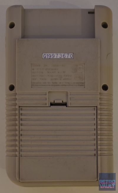 Le Game Boy DMG-01 (DMG = Dot Matrix Game) est la console portable originale de Nintendo, lancée en avril 1989 au Japon par Gunpei Yokoi. Conçu autour d'un processeur Sharp LR35902 à 4,19 MHz et d'un écran LCD monochrome réflectif 160×144 pixels, le DMG-01 a été délibérément conçu pour la robustesse et l'autonomie (30h sur 4 piles AA) plutôt que pour la performance — un choix stratégique face à l'Atari Lynx et la Sega Game Gear, plus puissants mais bien plus gourmands. Bundlé avec Tetris en occident, il s'est vendu à plus de 118 millions d'unités toutes révisions confondues (Game Boy + Game Boy Pocket + Game Boy Color). Cet exemplaire est fabriqué au Japon ("Made in Japan"), ce qui correspond aux premières séries de production — les modèles tardifs étant produits en Chine. Le numéro G19973670 permet de le dater approximativement de la période 1991-1992.