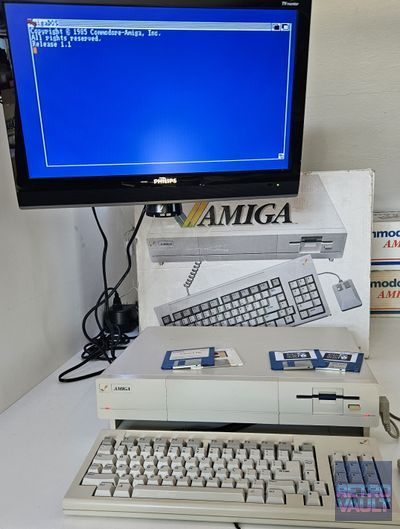 Premier ordinateur de la gamme Amiga, sorti en 1985, l'A1000 est une machine historique et rare. Conçu par Jay Miner, il embarque le chipset OCS original avec 256 Ko de Chip RAM extensible à 512 Ko. Particularité unique de ce modèle : le Kickstart se charge depuis disquette dans une RAM protégée en écriture (WCS). Exemplaire PAL européen en excellent état, plastique peu jauni, floppy fonctionnel. Livré avec sa boîte d'origine.