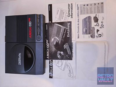 Console Commodore Amiga CD32 (version PAL) en excellent état esthétique et parfaitement fonctionnelle. Dernière console commercialisée par Commodore en 1993. Exemplaire propre, non jauni, avec couvercle du lecteur CD sans rayures visibles. Manette d’origine en très bel état, boutons fermes et réactifs. Console recapée (condensateurs remplacés) il y a quelques années, assurant une meilleure fiabilité à long terme. Configuration prête à l’usage avancé (jeux installés sur stockage interne, compatibilité étendue via accélérateur). Boîte d’origine présentant quelques plis et marques d’usage aux angles.