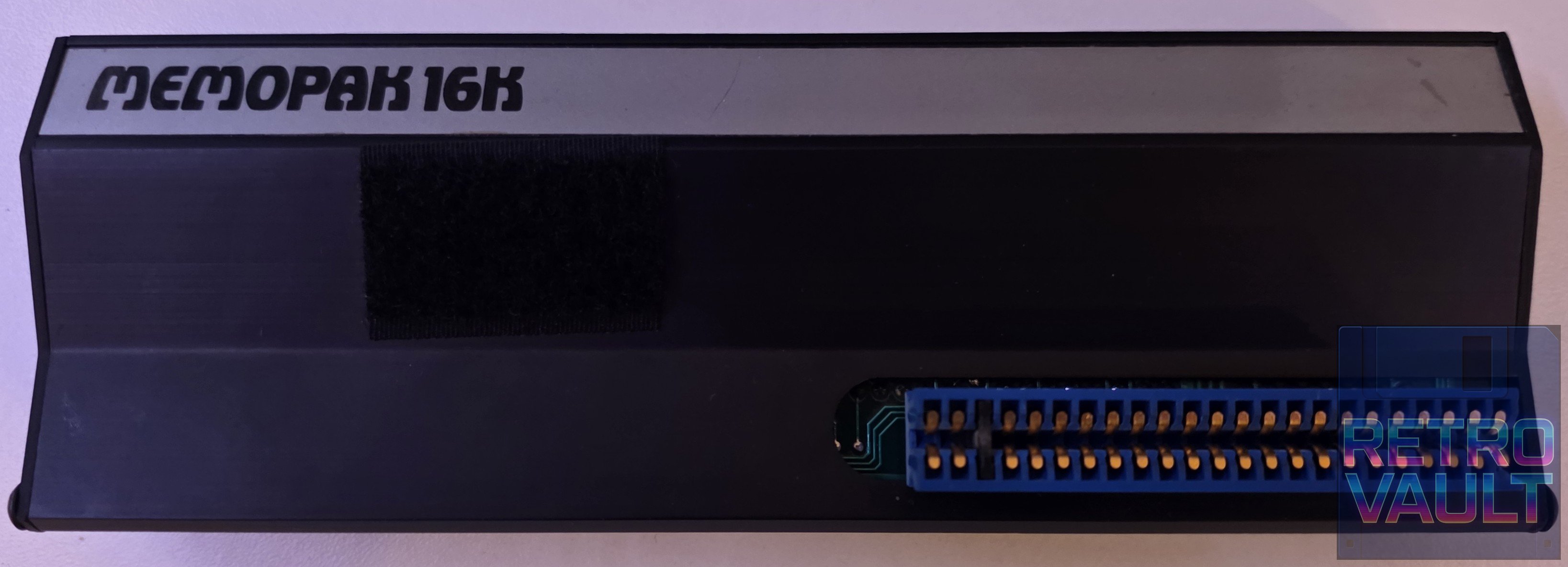 Extension mémoire 16K produite par Memotech Ltd au Royaume-Uni, l'une des plus réputées de l'écosystème ZX81. Se connecte sur le port d'expansion arrière. Dotée d'un DIP switch 3 positions permettant d'adapter la configuration selon la révision de la machine. Le velcro encore présent sur le boîtier témoigne de la solution artisanale universelle contre le fameux "RAM pack wobble". Pièce d'histoire personnelle — extension de mon premier ZX81.