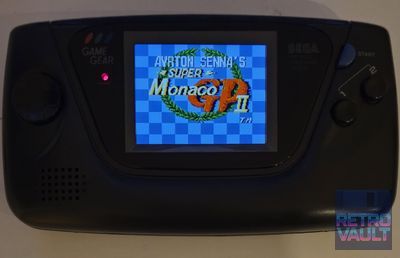 Suite directe de Super Monaco GP, ce titre a la particularité unique dans l'histoire du jeu vidéo F1 d'avoir été co-développé avec Ayrton Senna en personne — triple champion du monde (1988, 1990, 1991) et recordman de victoires à Monaco (6 fois). L'idée est née du distributeur brésilien de Sega, Tec Toy, et Senna s'est personnellement impliqué : visite de 3h30 au siège de Sega à Tokyo, suggestions de physique de conduite, enregistrement de commentaires vocaux pour chaque circuit, et conception de trois circuits fictifs dont son propre circuit privé à Tatuí, São Paulo. La version Game Gear propose le mode World Championship sur les 16 circuits de la saison F1 1991, un mode versus 2 joueurs, et la boîte de vitesses au choix (auto, 4 ou 7 rapports). Note : la version Game Gear omet le mode Senna GP et adopte une vue troisième personne, contrairement à la version Mega Drive. Le jeu n'a jamais été réédité en raison des droits liés à l'image de Senna, ce qui renforce son intérêt pour les collectionneurs.