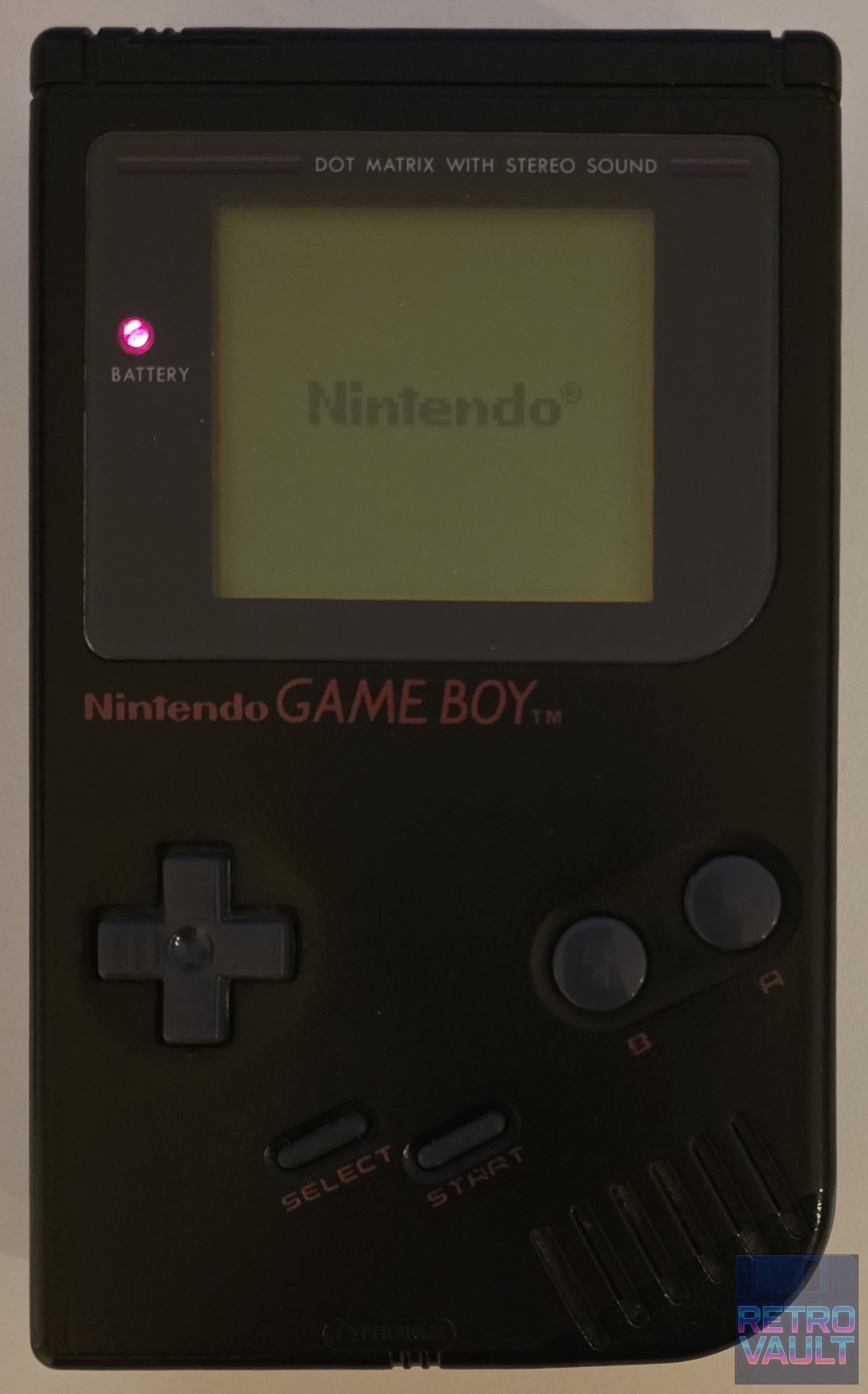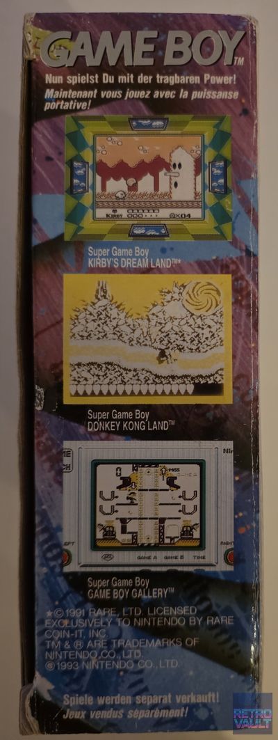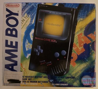 En 1994, face à la montée en puissance de la Sega Game Gear et de l'Atari Lynx, Nintendo lance la campagne "Play It Loud" — une stratégie marketing radicalement différente ciblant un public adolescent avec des publicités volontairement provocatrices et des coloris flamboyants. Six nouvelles couleurs sont introduites : Rouge, Jaune, Vert, Bleu, Blanc... et Noir. Ce dernier est de loin le plus difficile à trouver aujourd'hui, en particulier en boîte et en état exemplaire. Contrairement aux autres coloris DMG dont l'ABS blanc jaunit irrémédiablement avec le temps (nécessitant souvent un Retr0bright), le plastique noir ne souffre pas de ce vieillissement — ce qui en fait paradoxalement la version la mieux conservée en apparence après 30 ans. Cet exemplaire version Benelux DE/FR correspond au packaging tardif avec polices "Play It Loud", distincts du premier packaging sobre de 1990. Fonctionnement confirmé sur Tetris, écran net, son correct.